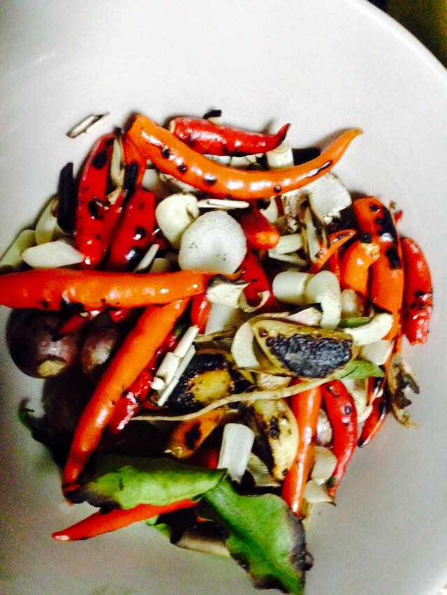 แล้วๆกะเอาพริก บักพริกหยวก กระเทียม หอมแดง ไปคั่วไฟให้มันห๊อมหอม