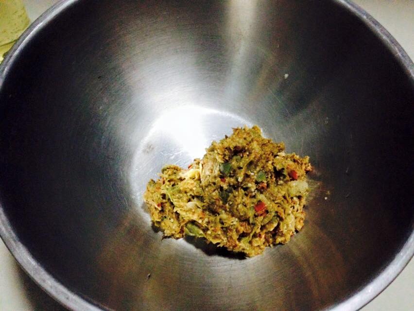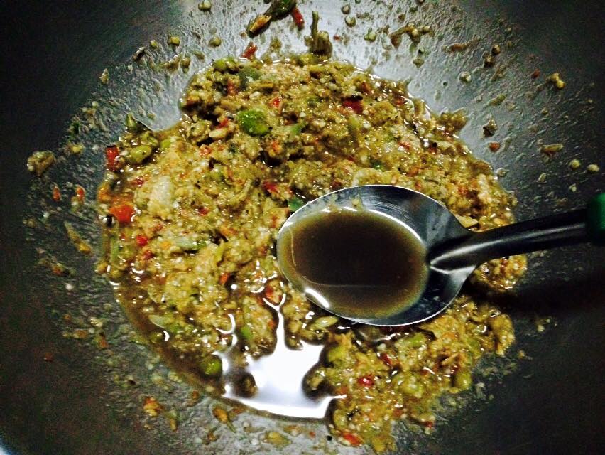 ใส่เนื้อปลาทูลงไปตำ