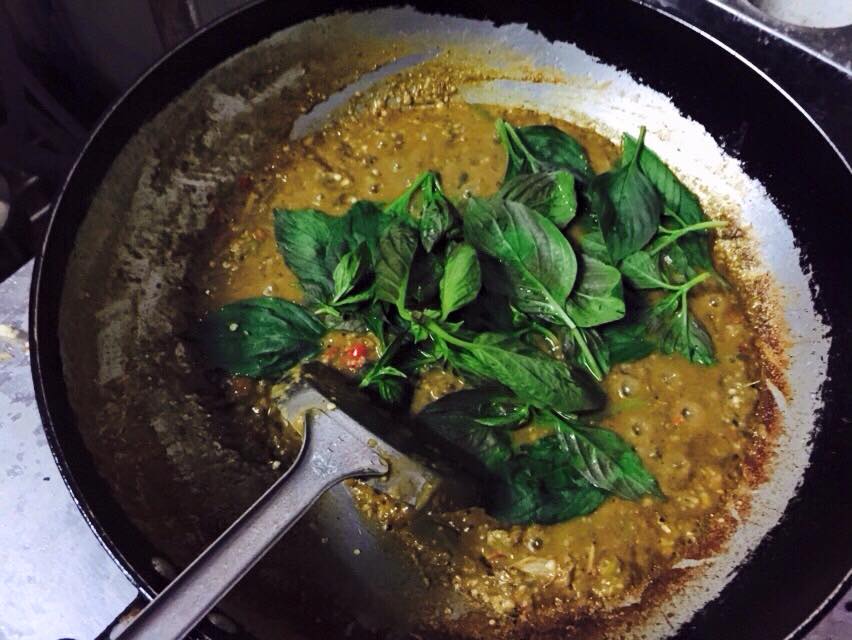 ผัดให้หอม แล้วจั่งใส่ใบโหระพา